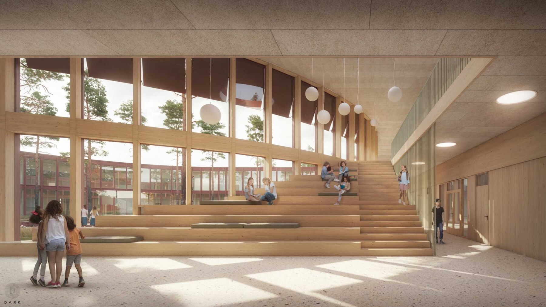 Den nye skolen blir ikke bare et læringsmiljø, men et viktig samlingspunkt for hele lokalsamfunnet. Skolen planlegges for rundt 400 elever og bygges i massivtre – et grep som understreker prosjektets sterke bærekraftsprofil. Prosjektet er utført i tett samarbeid med DARK Arkitekter og LARK Landskap.