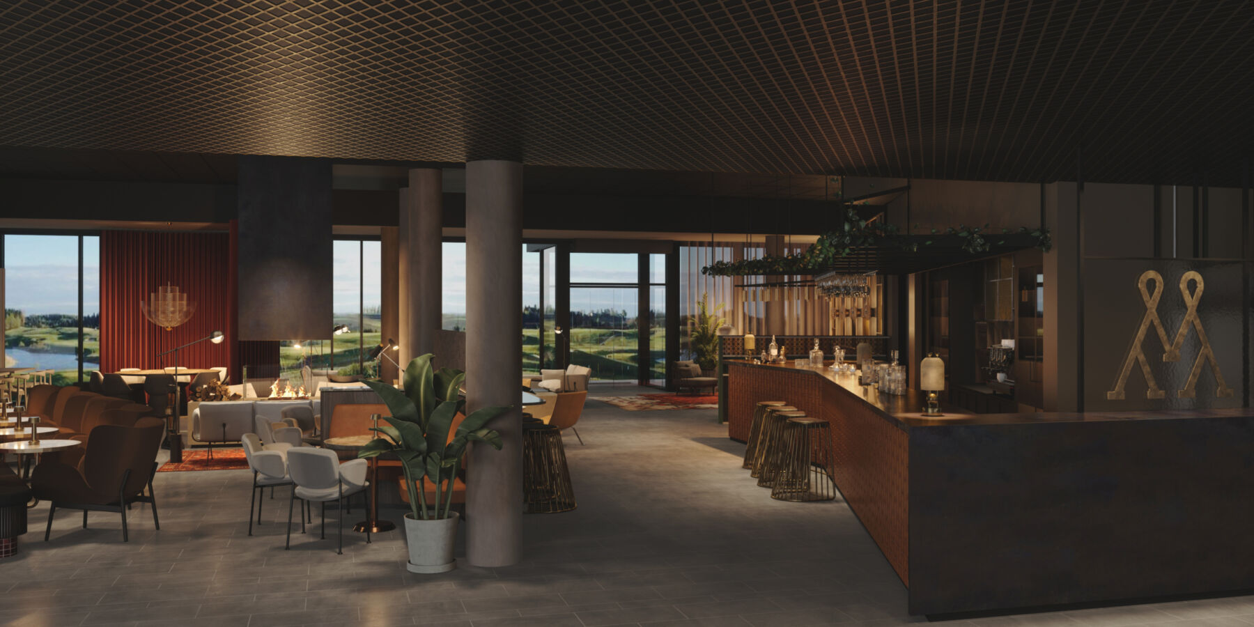 På Miklagard møtes gjestene av åpne og inviterende fellesarealer med resepsjon, peisestue og restaurant med åpent kjøkken. Som et bakteppe ligger utsikten mot golfbanen som er nærmeste nabo. Kurs- og konferansefasiliteter med konferansesal på 700m2, kursrom og styrerom ligger i tilknytning til fellesarealene. Videre ligger treningsrom og spa-anlegg med basseng, behandlingsrom, badstu og sauna, utendørs kulper og hamam.