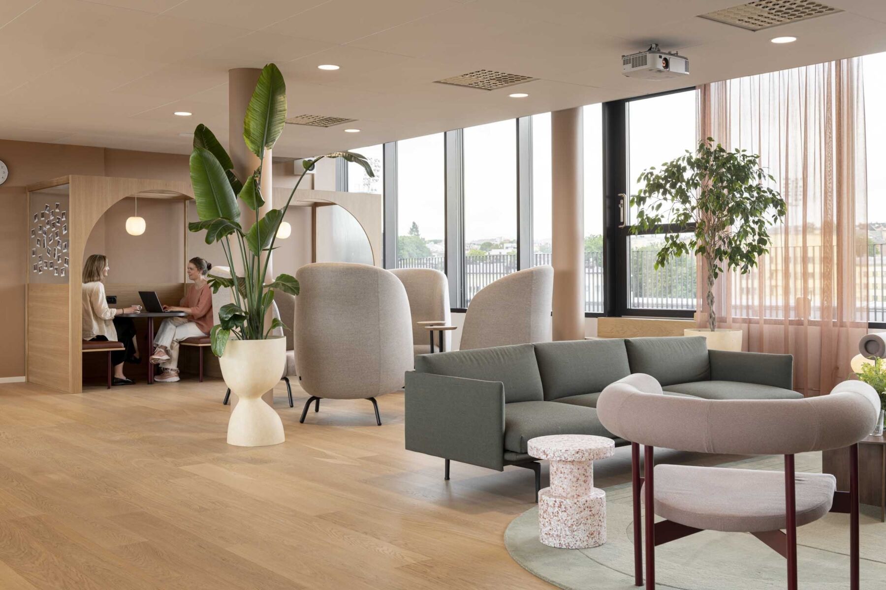 Zinc laget et konsept for oppgradering av lokalene, inkludert en plan for bedre utnyttelse av et stort, fleksibelt fellesareale gjennom soneinndeling og variert møblering som gir rom for Miles’ konsulenter når de er innom kontoret og for kundearrangementer.