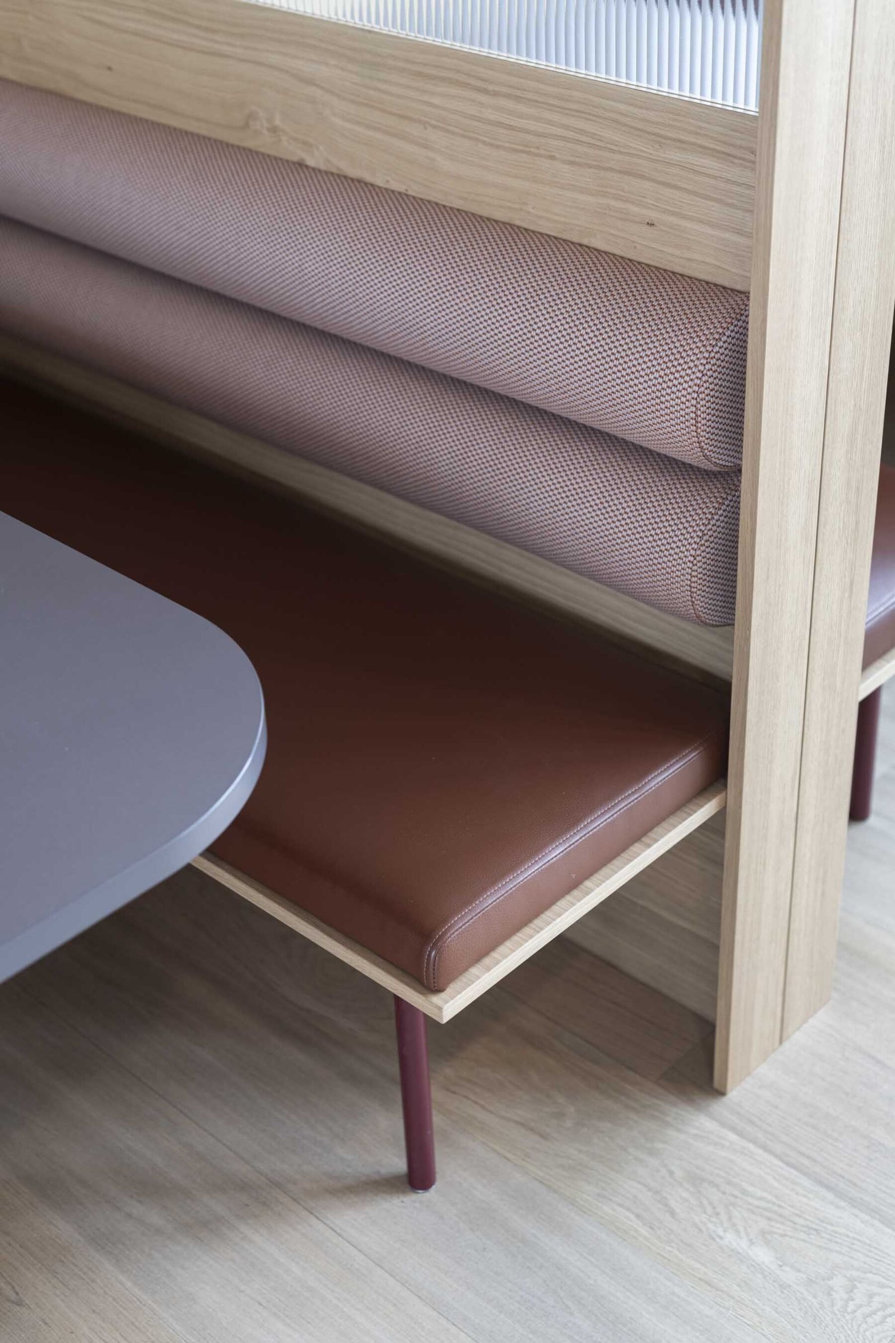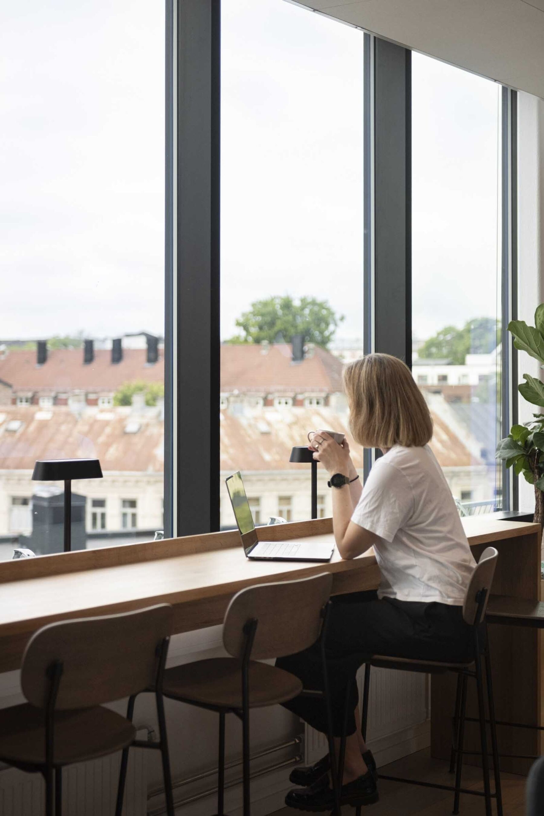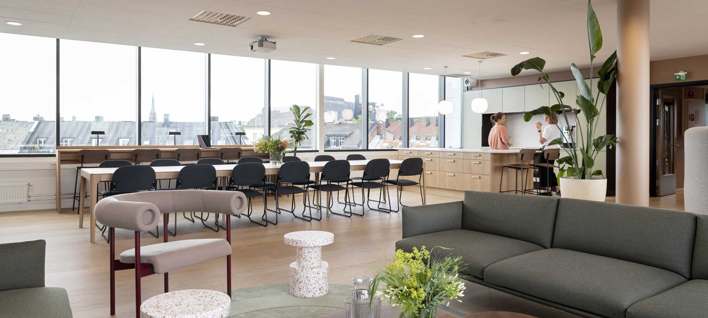 Dette er et gjenbruksprosjekt hvor parketten ble slipt og lyslasert, glassvegger ble flyttet og gjenbrukt, og kjøkkenfrontene ble lakkert. Arbeidsbord, møtebord – og stoler er gjenbrukt som de var, mens vi har supplert med møbler med nye funksjoner, samt tekstiler og akustiske paneler for å skape et bedre lydmiljø.
